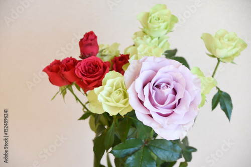 purple, green, rose, bouquet, flower, floral, lovely, bloom, red