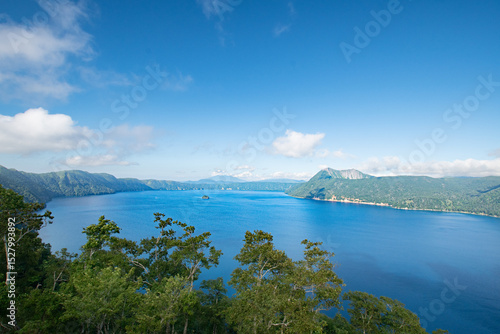 美幌峠から眺める日本最大のカルデラ湖 屈斜路湖と中島のパノラマ風景