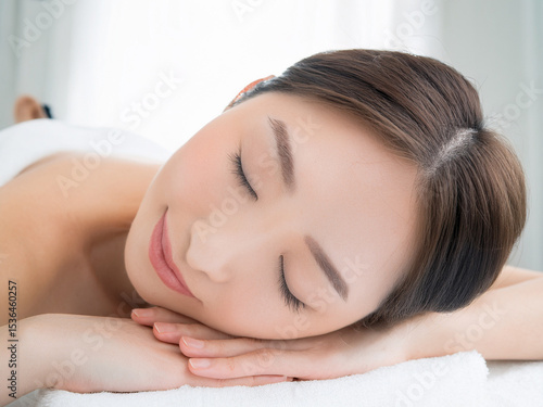 リラクゼーションサロンでくつろぎ癒される日本人女性