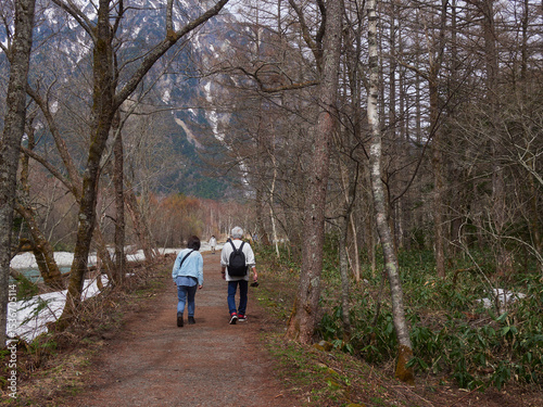 couple, family, man, mountain, forest, outdoors, travel, journey, tour tourism, people, visitor, walk, walk, lifestyle, landscape, view, spring, open air, fun, nature, wood, forest, grove, park, hike, mountain, leisure, sunny, japan, green, route, trek