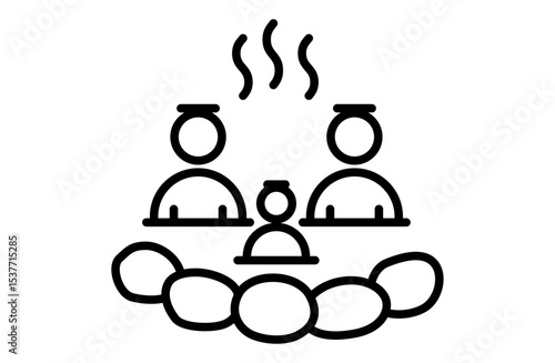 hot spring, bathe, bathe, travel, family, accommodation, icon, illustration, vector, symbol, silhouette, sweet, pretty, monochrome, black-and-white, white background, pictogram