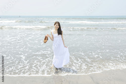 midsummer, woman, woman, woman, girl, young, youth, summer, sea, beach, japanese, asian, beach, vacation, leisure, resort, travel, summer getaway, relax, stand, smile, smile, smile, smile, smile, joyful, fun, blue skies, white, vacation, vacation, holiday