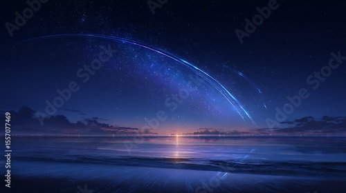 sea, falling star, milky way, nightscape, reflex, cosmos, peace, sky, blue, digital artwork, science fiction, science fiction, mystic