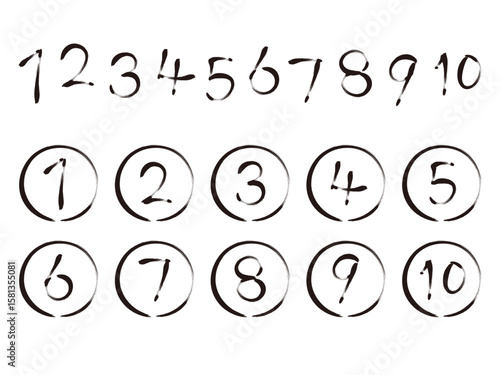 シンプルな手描きの数字 番号のセット 筆文字