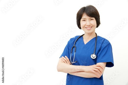 woman, doctor, doctor, doctor, stethoscope, medical care, waist up, white background, nurse, nurse, nurse, smile, smile, relax, smile, joyful, rejoice, hope, confidence, happy, happiness, refreshing, portrait, japanese, asian, copy space, space, middle-aged