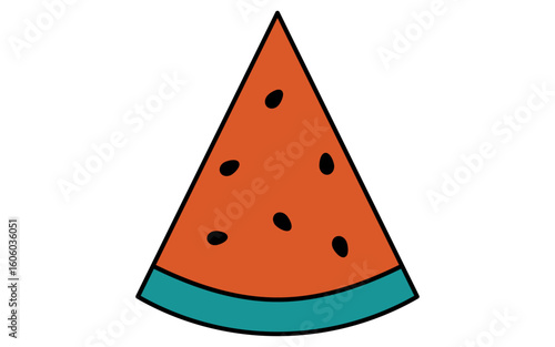 カットスイカのシンプルな線画イラスト、夏のイラスト、白黒