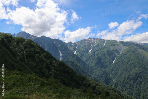 landscape, view, mountain, sky, cloud, white horse, panorama, panoramic, white, blue, summer, climb, hike, trek, nature, depression, alps, forest, rock, wood, blur, peak, tour tourism, japan