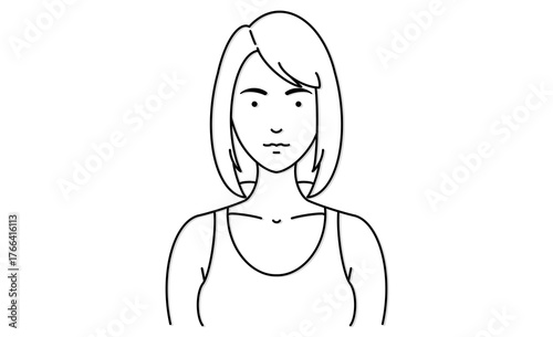 正面を向いたタンクトップでボブの女性の線画アイコン素材