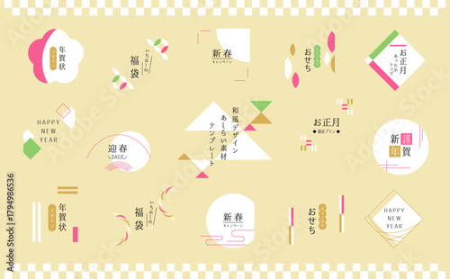 frame, template, new year, design, background, modern, elegant, beige, set, greeting, season, white, decoration, japan, happy new year