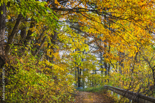 黄色く染まる紅葉風景