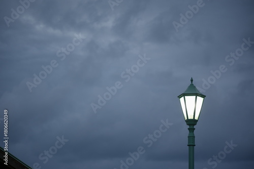 ランタン型街路灯と曇り空