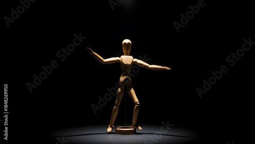 spotlight, attention, business, mover, mannequin, woody, doll, salaried employee, man, woman, star, hero, flair, manpower, headhunting, person, expert, chief, copy space, concept, symbol, illustration, light, shadow, dramatic, theatre, stage, stage, solitude, pressure, glory, celebration, excellence