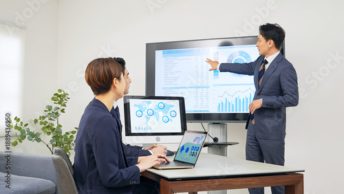 business, meeting, meeting, management, strategy, teamwork, presentation, advisory, version, corporate, manpower, training, training, meeting, consultation, group, cooperation, workshop, colleague, boss, secondary, screen, monitor, slide, communication, datum, analysis, study, marketing, achievement, businessman, suit, work, employee, salaried employee, japanese, man, woman, office, office, business, people