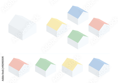 淡い色合いの屋根の家が並んでいるアイソメトリックイラストセット