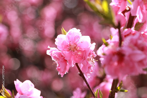 peach, flower, spring, blue skies, open air, pink, pink, nature, landscape, full bloom, branch, flower petals, plant, sunny, wood, light, copy space, walk, asia, sum, promenade, sky, japan