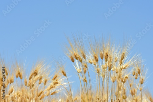 barley, wheat, wheatfield, copy space, blue skies, sky, open air, crop, crop, grain, landscape, ear, grain, nature, vegetable, foodstuff, food, food, food, farming, plant, field, sunny, cultivation, brown, early summer, japan, photo