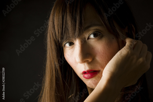 woman, portrait, studio, sex appeal, people, japanese, young, sweet, lovely, girl, model, copy space, relax, black, face, beauty, alone, cool, adult, night