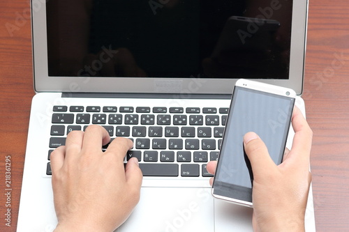 ノートパソコンとスマートホン 使用イメージ