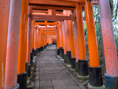 red, torii, shrine, japan, kyoto, world heritage, tour tourism, travel, religion, prayer, mountain, resort, religion, wooden, nature