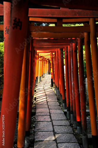 torii, vermilion, entry, japan, shrine, route, garden, park, architecture, japanese, wood, wooden, red, landscape, green, bridge, ancient, travel