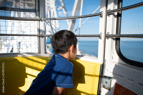 children, person, people, japanese, funfair, ferris wheel, park, image, copy space, smile, smile, theme park, pose, boy, children, child rearing, children, open air, outing, enjoy, happy, sunny, play, lively, sweet, pretty, naughty, daytime, vehicle, view