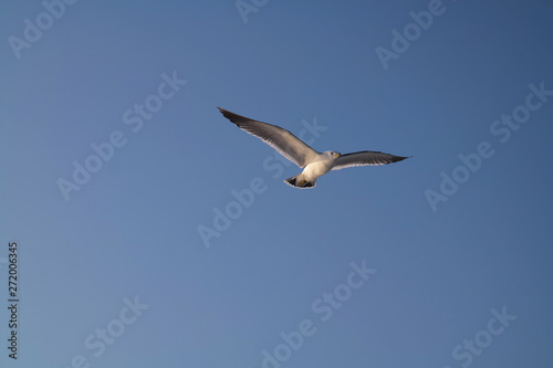 bird, gull, sky, flying, flight, fly, blue, sea, wing, animal, liberty, nature, air, white, wildlife, beak, feather, wild, glide, ocean, soaring, free, free