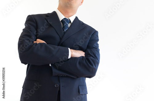businessman, business, man, suit, man, people, contemplate, copy space, planning, salaried employee, japanese, portrait, waist up, 30s, problem, adult, white background, work, young
