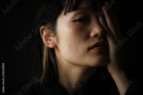 sad, lonely, flop, broken heart, woman, portrait, clean, pretty, young, beauty, dark, japan, japanese, asia, people, sweet, waist up, pretty, expression, apprehension, fatigue, lovely, solitude, cry, copy space, model, girl, overwork, tear, face, adult, health, work, lifestyle, cosmetic, indoor, indoor, room, black, background, contemplate, up, feeling, beauty, lipstick, trouble