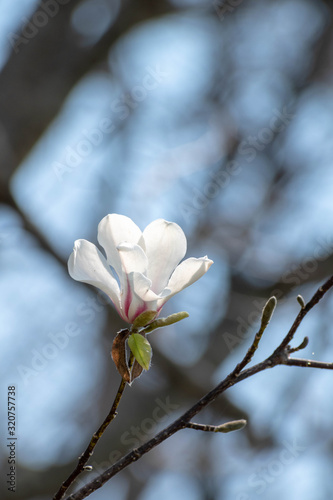 plant, wood, flower, full bloom, flower petals, plural, magnoliaceae, hokkaido, white, white, up, an, sky, blue skies, branch, wallpaper, background, copy space, card, open air, nature, unmanned, spring, landscape, fist, clean, pretty