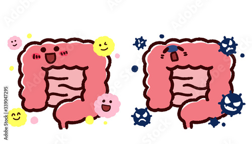 entrails, colon, organ, expression, set, entrails, health, marode, poor health, lively, character, smile, stern, medical care, medicine, face, loose, white background, material, illustration, pastel