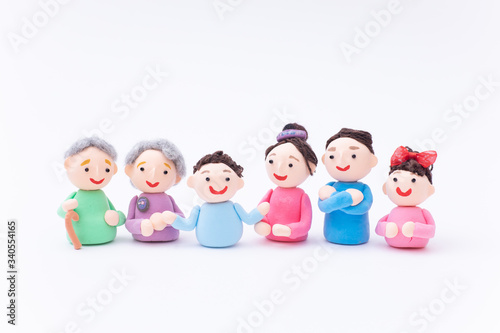 手作り紙粘土人形 老夫婦と家族の集まる様子