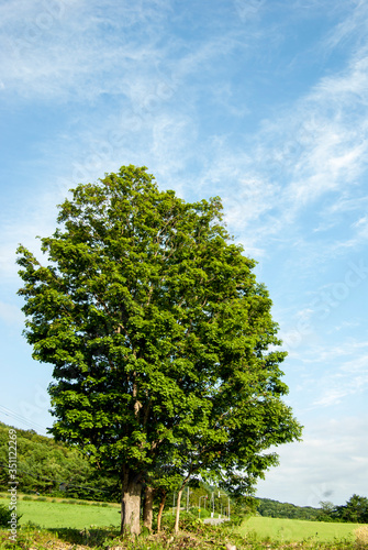 outdoors, farm, hokkaido, summer, japan, countryside, nature, farming, cloud, blue skies, early summer, crop, wheat, bloom, landscape, sky, field, grass, green, meadow, summer, wood, forest, blue, rural, countryside, agriculture, spring, country
