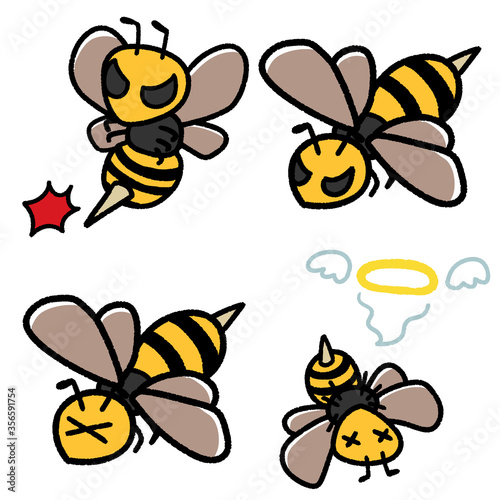wasp, wasp, dangerous, pest, sweet, set, character, pose, stick, destruction, insect, attention, summer, illustration, fly, illustration, white background, fear, refuse, evacuate, shrink, die, cadaver