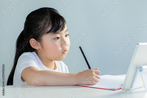 girl, ict, online, school, tablet, fun, training, japanese, elementary school, seated, care, smile, small, children, educated, light, children, game, classroom, sweet, indoor, toddler, child rearing, reading, curiosity, schoolchild, study, home, table, desk, children, terminal