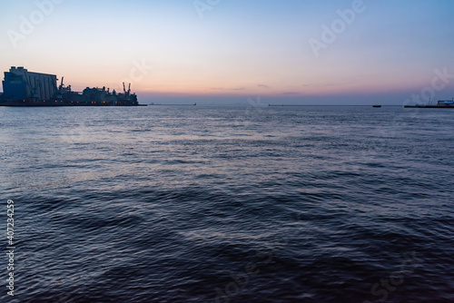 sunset, sea, port, landscape, quiet, fukuoka, travel, tour tourism, orange, sky, night, nature, cloud, water, lovely, quiet, seascape, red, sunset, transportation, warehouse, open air, unmanned