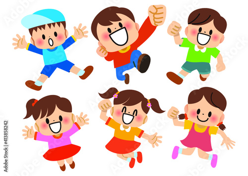 children, boy, girl, pretty, mate, jumping, plural, chum, fun, joyful, rejoice, ponytail, short, children, person, boy, girl, friends, fellow, smile, run, banzai, jump, fly, lively, pose, sweet, people, toddler, student, kindergartner, kindergarten, preschool