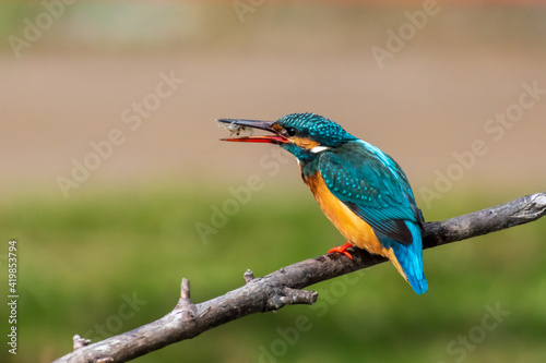小枝に止まり餌を探すカワセミ