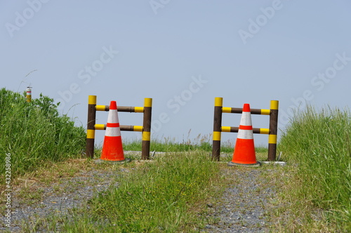 barricade, closure, car, sidewalk, protection, dangerous, notice, signs