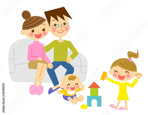 family, smile, happy, happiness, child rearing, children, people, insurance, couch, indoor, mother, father, girl, baby, lifestyle, live, home