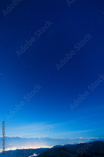 常念岳と鹿島槍ヶ岳など北アルプスと星空, 松本市,長野県