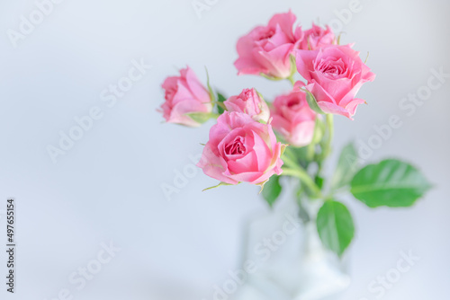rose, rose, pink, flower, fresh flower, bottle, vase, flower petals, plant, floral arrangement, flower, gift, light, spring, sweet, clean, love, copy space, background, indoor, indoor, leaf, stem, wedding