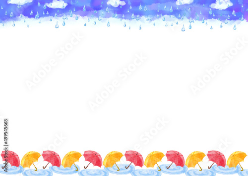 illustration, background, frame, vector, nature, sweet, copy space, background, colourful, watercolor, yellow, umbrella, dew, rain, drop, sky, cloud, rainy season, puddle