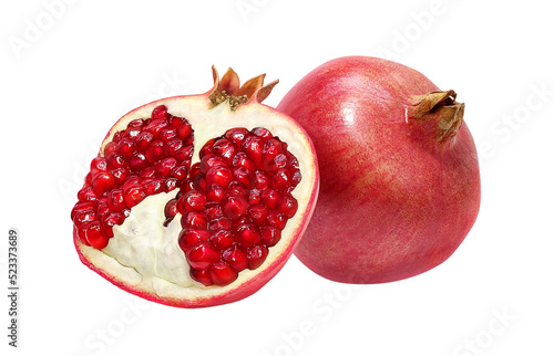 illustration, pomegranate, pomegranate, real, fruit, fruit, foodstuff, food, pomegranate, white background, whole, raw material, material, food, simplex, display, fruit, fresh, fresh, red, red, set, plural, up, closeup, cut, cross section, cut off, break, half, flesh, nectar, content, cut-out