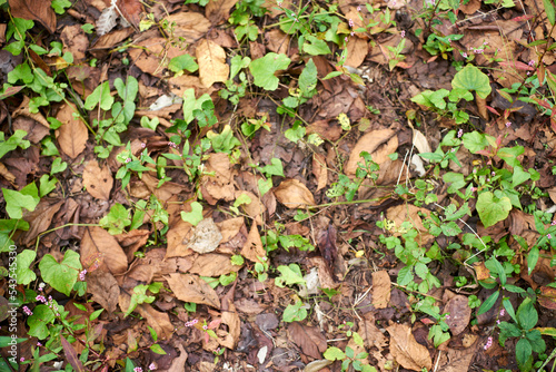 地面・落ち葉・枯れ葉・秋・雑草・足元・アップ