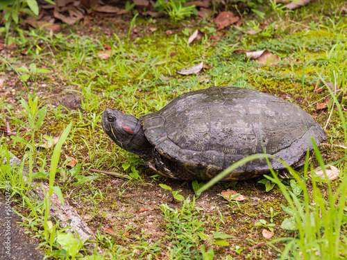 陸地にいるミシシッピアカミミガメ