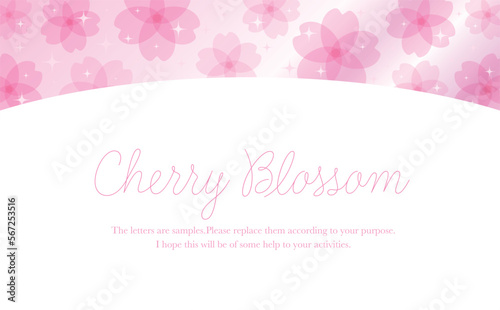 透明感のあるおしゃれな春の桜のグラデーションフレーム_ベクター素材_横長コピースペース_ピンク