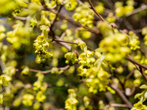 flower, chartreuse, plant, wood, branch, nature, early spring, spring, park, garden, garden, promenade, route, stroll, japan, open air, green, yellow, leaf, landscape, green, closeup, pretty, sweet, material, background