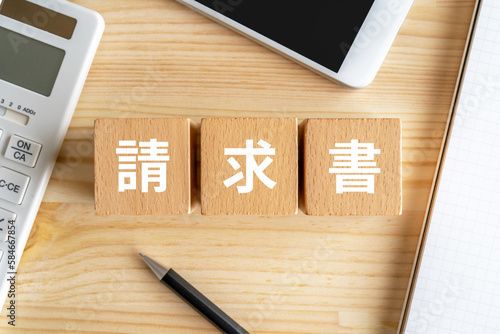 請求書と書かれたブロックが置かれた机