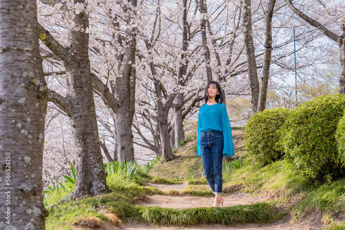 お花見で散歩する女性8