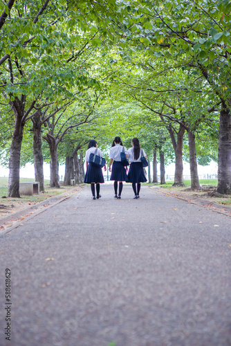 august, chat, short hair, waist, lifestyle, ribbon, open air, calm, sweet, summer, summer getaway, conversation, student, hope, sky, health, afternoon, park, happy, memory, youth, woman, future, people, best friend, course, uniform, sunny, blue skies, consultation, chum, long hair, weather